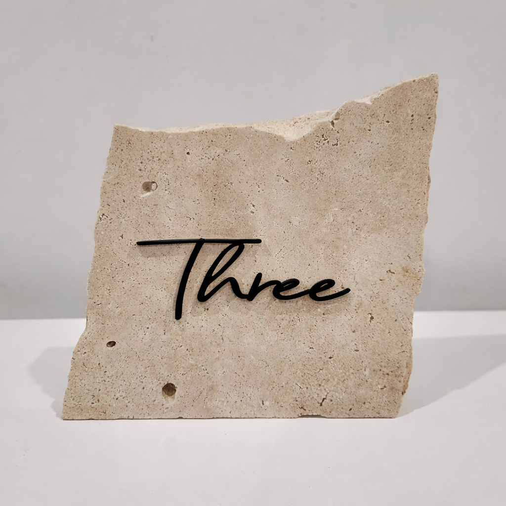 Beige Stone and Black Cursive Acrylic, up to ten available