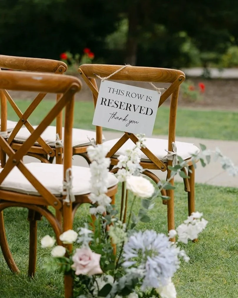 This Row Is Reserved Wooden Hanging Signs for Wedding Chairs, 10.2x7.8 Inches